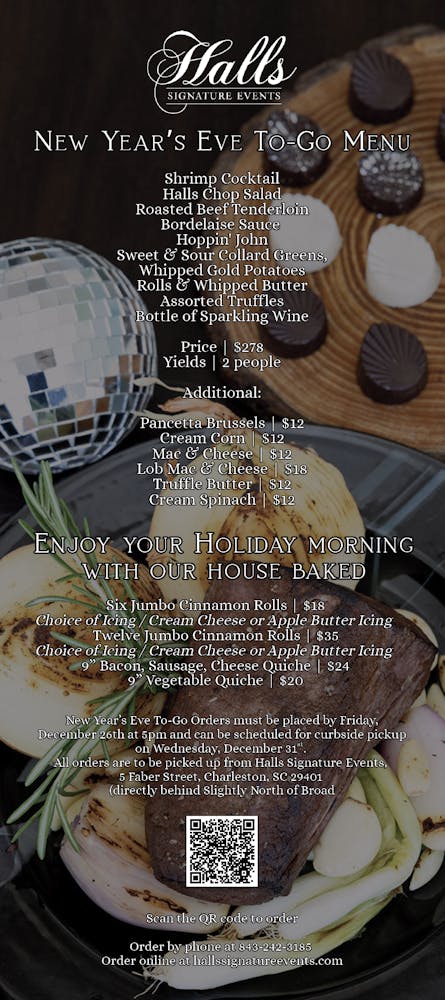 Order your entire Christmas Meal, New Year's Eve Meal, and your Holiday Morning Baked Goods from Halls Signature Events!