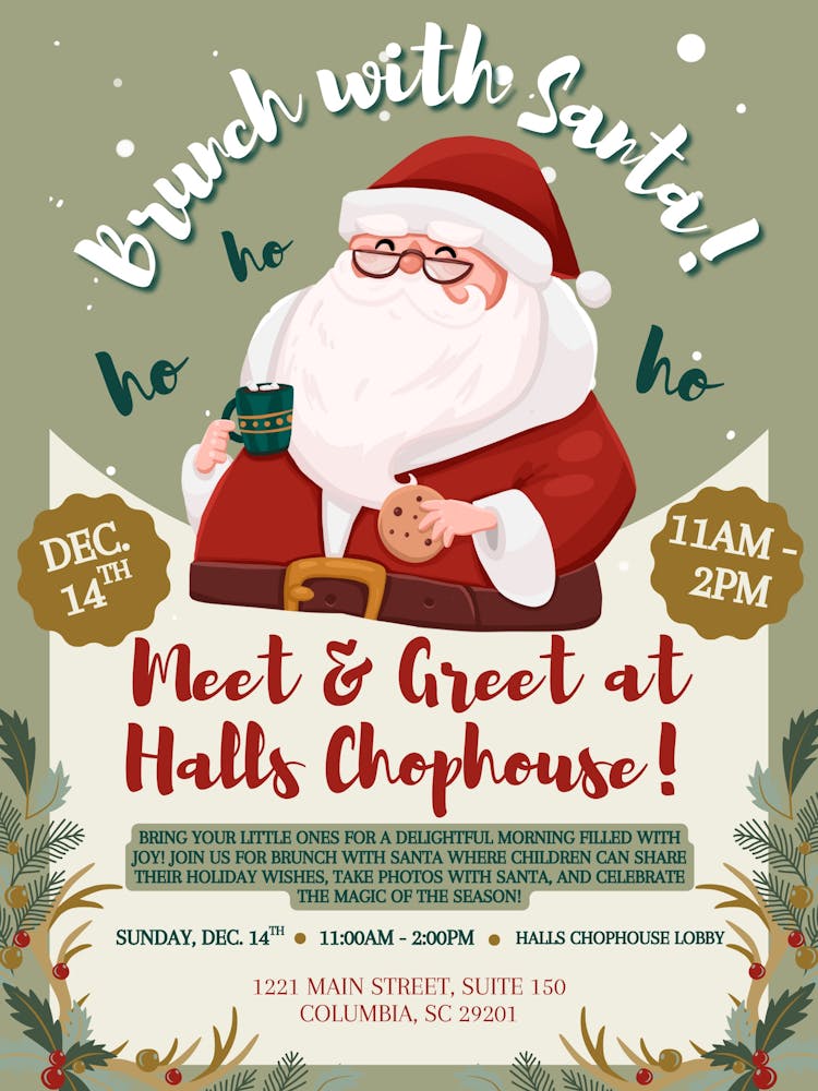 Join Us for Brunch with Santa at Halls Chophouse Columbia!